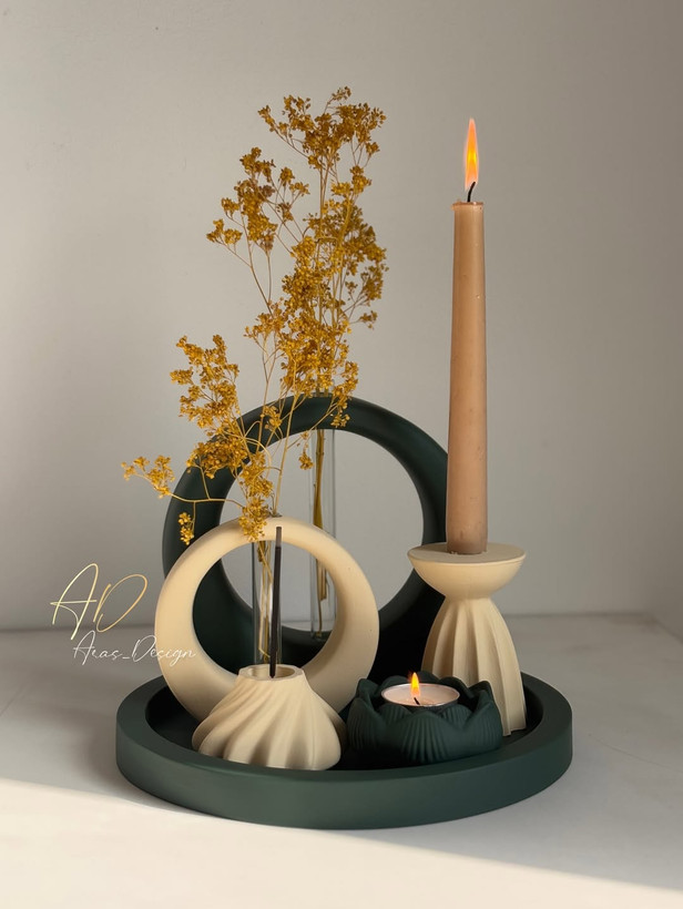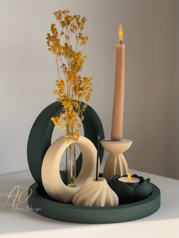 ست دکوری و تزیینی جلو مبلی کرم-سبز
