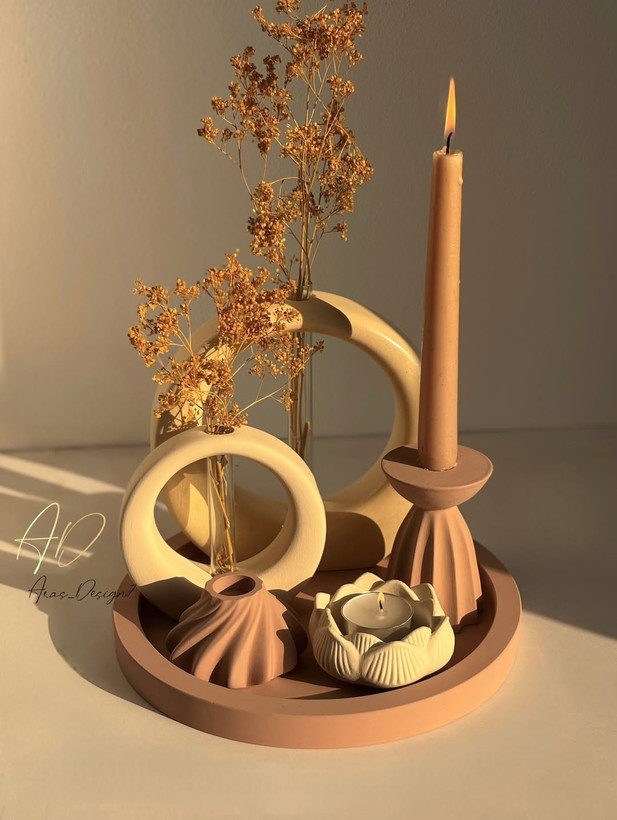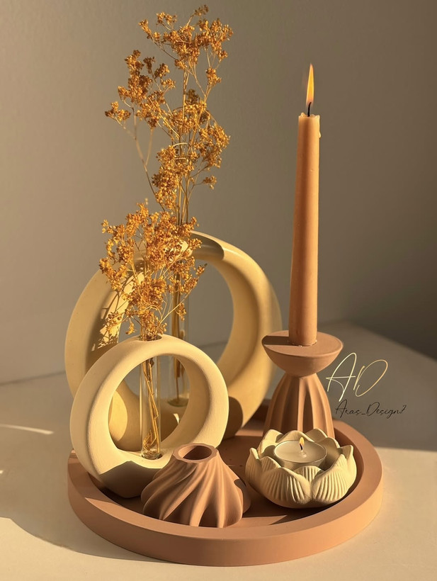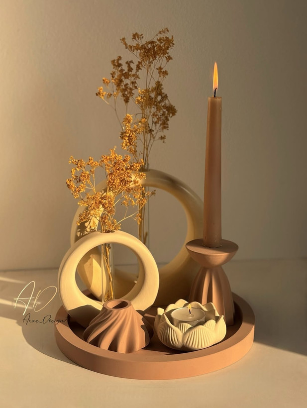 ست دکوری و تزیینی جلو مبلی کرم-قهوه ای
