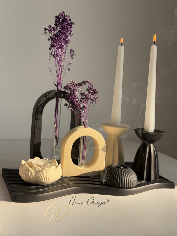 ست دکوری و تزیینی جلو مبلی سینی موج مشکی-کرم